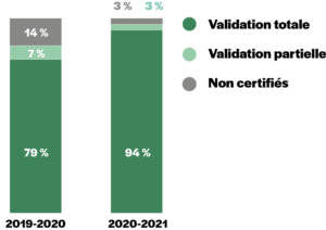 La validation de la formation peut être totale ou partielle. Les blocs validés le sont définitivement. Les blocs non validés peuvent l’être dès l’année suivante.